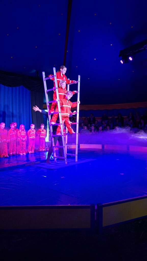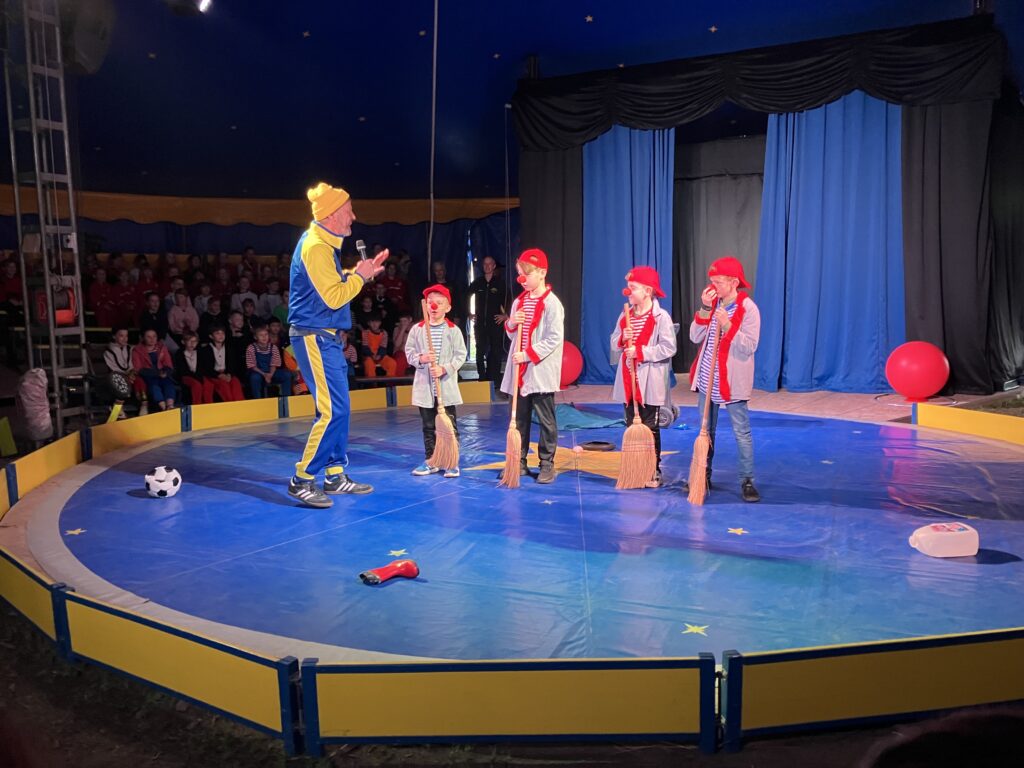 Jeden Tag wurde geübt: Jonglieren mit bunten Bällen, Gleichgewichtsbalance auf dem Drahtseil, lustige Nummern mit Requisiten und kleine Sketche, bei denen die Clowns die Zuschauer zum Lachen brachten. Die Fakire trainierten langsam und sicher, immer mit Rücksicht aufeinander, damit sich niemand überfordert fühlte. Die Lehrerinnen und Lehrer, die Zirkusleute und viele helfende Eltern standen bereit, um die Kinder zu unterstützen, zu motivieren und die Atmosphäre familiär und herzlich zu gestalten. Am vergangenen Wochenende standen insgesamt vier Vorstellungen auf dem Programm. Das Zirkuszelt stand an der Kettelerschule. Freundlicherweise hatte diese den Zeltplatz nach dem eigenen Projekt, uns zur Verfügung gestellt.