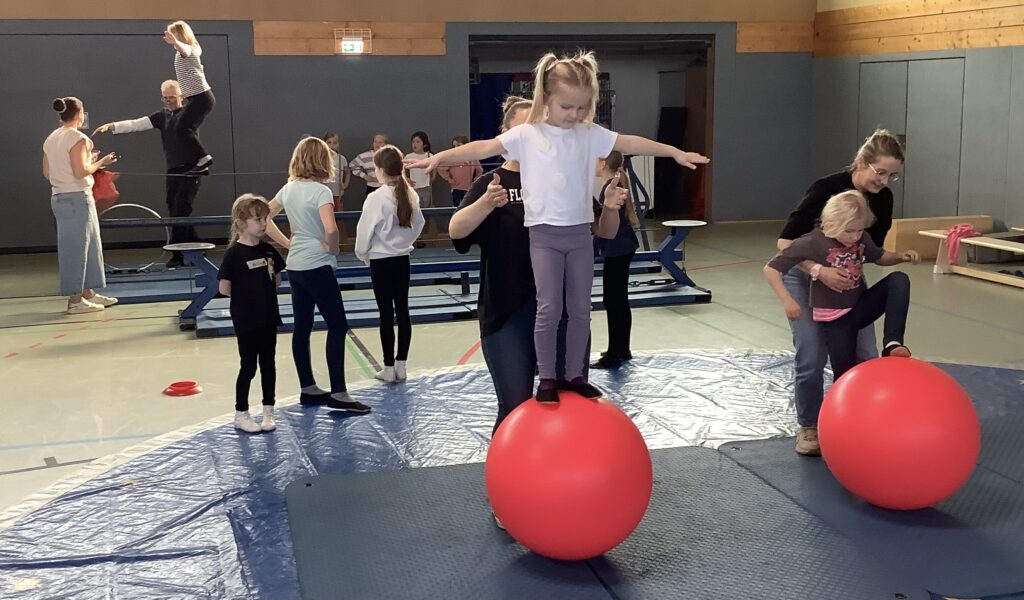 In der letzten Woche verwandelte sich unsere Turnhalle in eine glitzernde Zirkusarena. Der Zirkus Tausendtraum gastierte eine ganze Woche bei uns und brachte Magie, Musik und jede Menge Spaß mit. Die Kinder tauchten ein in verschiedene Rollen: Clowns, Fakire, Jongleure, Akrobaten und viele weitere faszinierende Zirkusmenschen. Unter fachkundiger Anleitung lernten sie Haltung, Balance und Koordination – und vor allem, wie wichtig Teamarbeit und Mut sind.